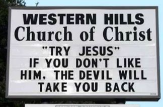 There are some great sayings on signs in front of churches that are meant to stimulate thought. Funny. Clever. Provocative. And meant to get folks thinking about the Lord Jesus Christ and His kingdom.